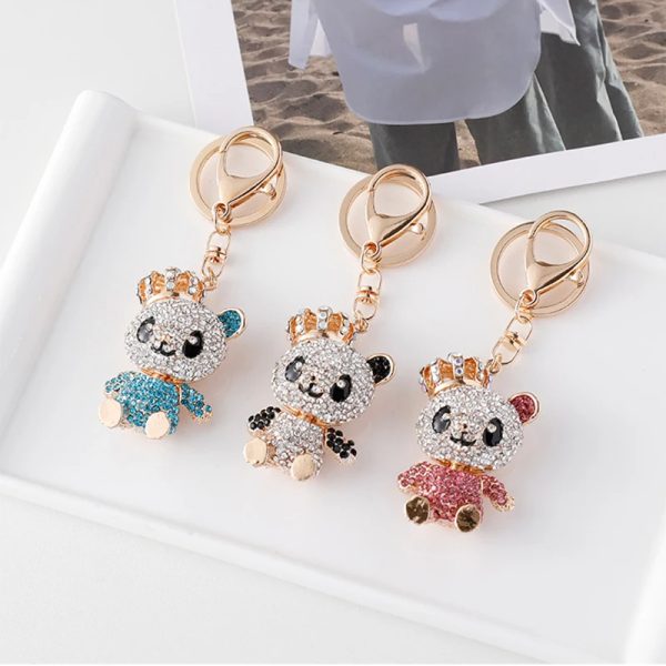 Creative cute cartoon crown panda crystal metal keychain