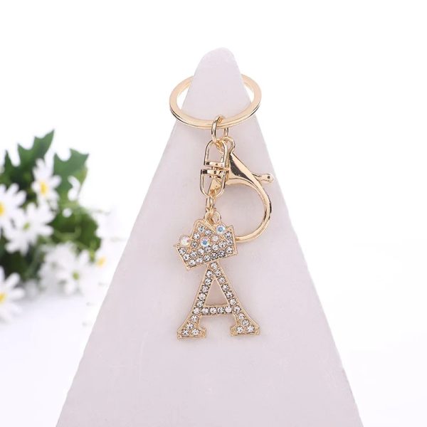 New gold diamond inlaid elegant letters metal keychain