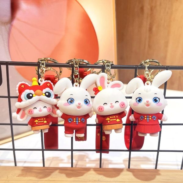 New year red lucky rabbit cute silicone keychain