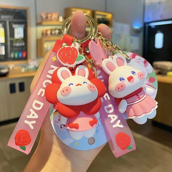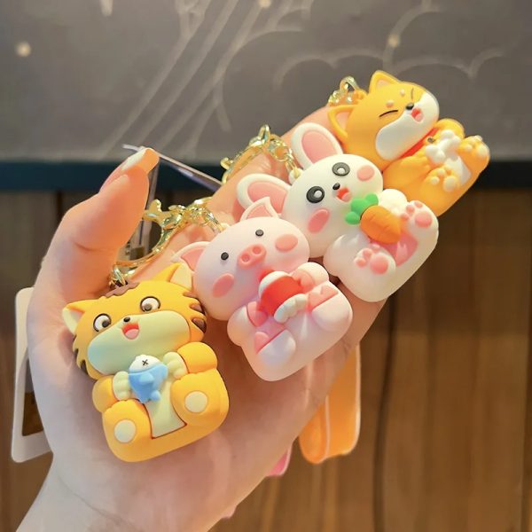Cartoon rabbit dog cute tiger pig silicone keychain